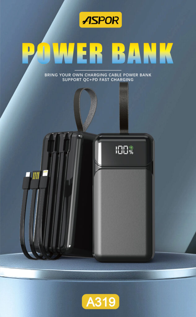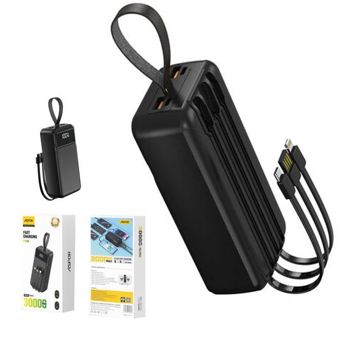Aspor 22.5W 30000mAh in Built Cables Power Bank