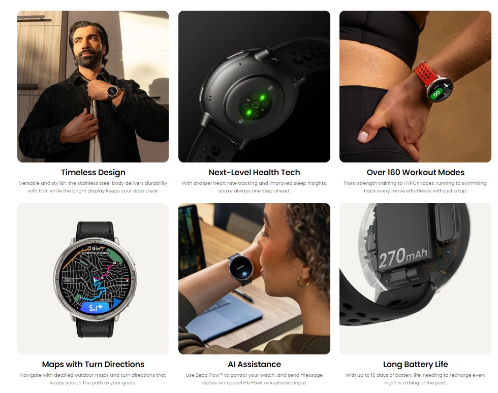 Stay active with 160+ sports modes, breathe easy with smart health monitoring, and enjoy superb battery efficiencythat keeps going day after day without wasting power. 🌿⚡