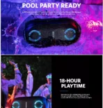 - Soundcore App:Â Up the stakes with electrifying party games, tailor the EQ and lights, and switch between Indoor and Outdoor sound modes.