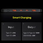 Supports 65W input, allowing the power bank to be fully recharged in approximately 1.5 hours when using a compatible charger.