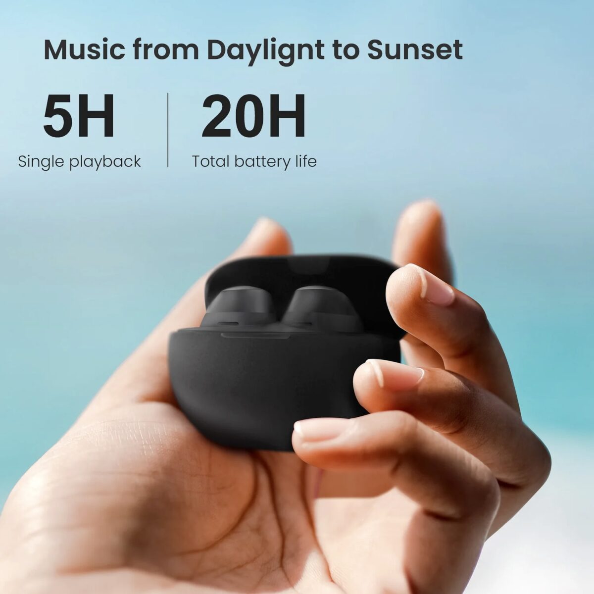 Easily flip to open the charging case with only one hand. It can last up to about 20 hours, making sure you always have some music to lighten your routine.