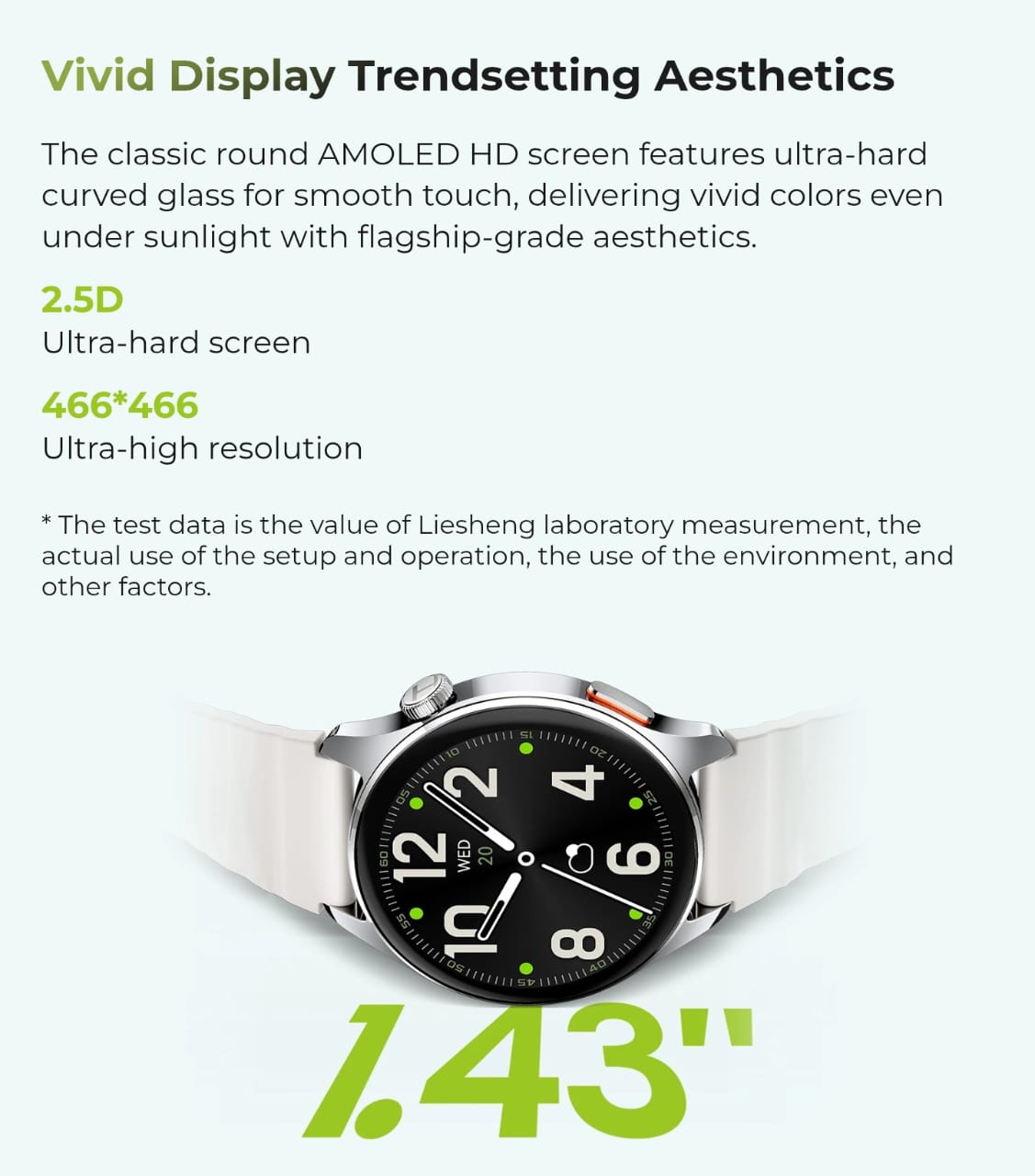 • AMOLED Display – Bright and vibrant 1.78-inch screen for sharp visuals, smooth touch response, and clear readability even under sunlight.
