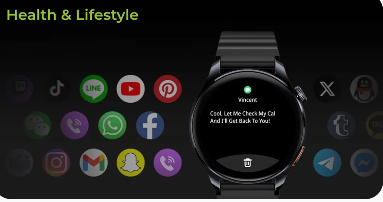 • Smart Notifications – Stay connected with call, message, and app alerts directly on your wrist.