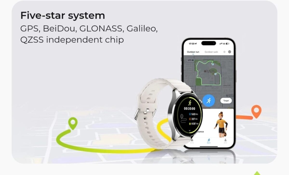 • Built-in GPS – Track your outdoor runs, cycling, and hikes with accurate real-time positioning without needing a phone.