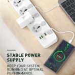 - Output Port: 4x Socket Combo, 3x USB