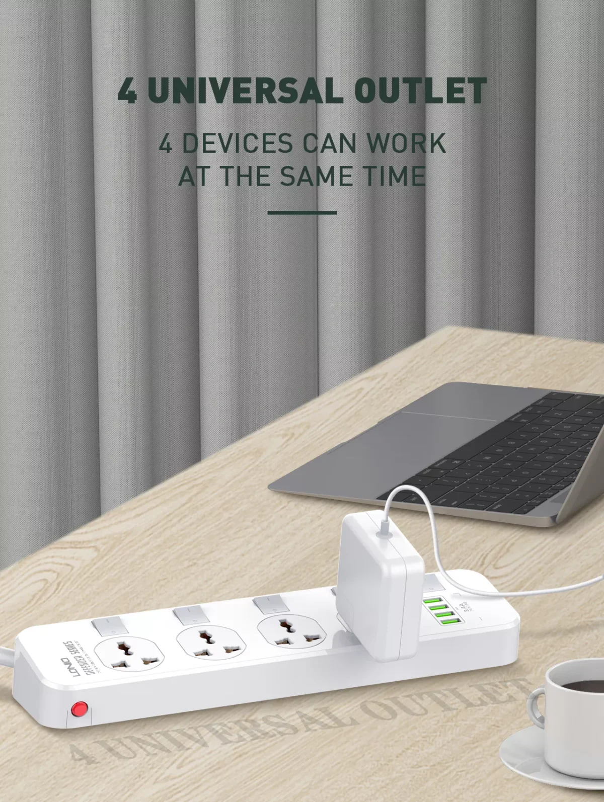 - 4 Universal Outlet. 4 Devices Can Work At the Same Time.