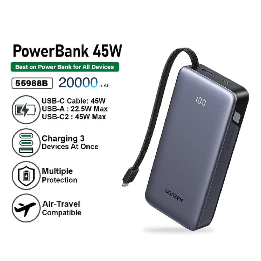 UGREEN 45W 20,000 mAh Power Bank with In-Built Type-C Cable ⚡